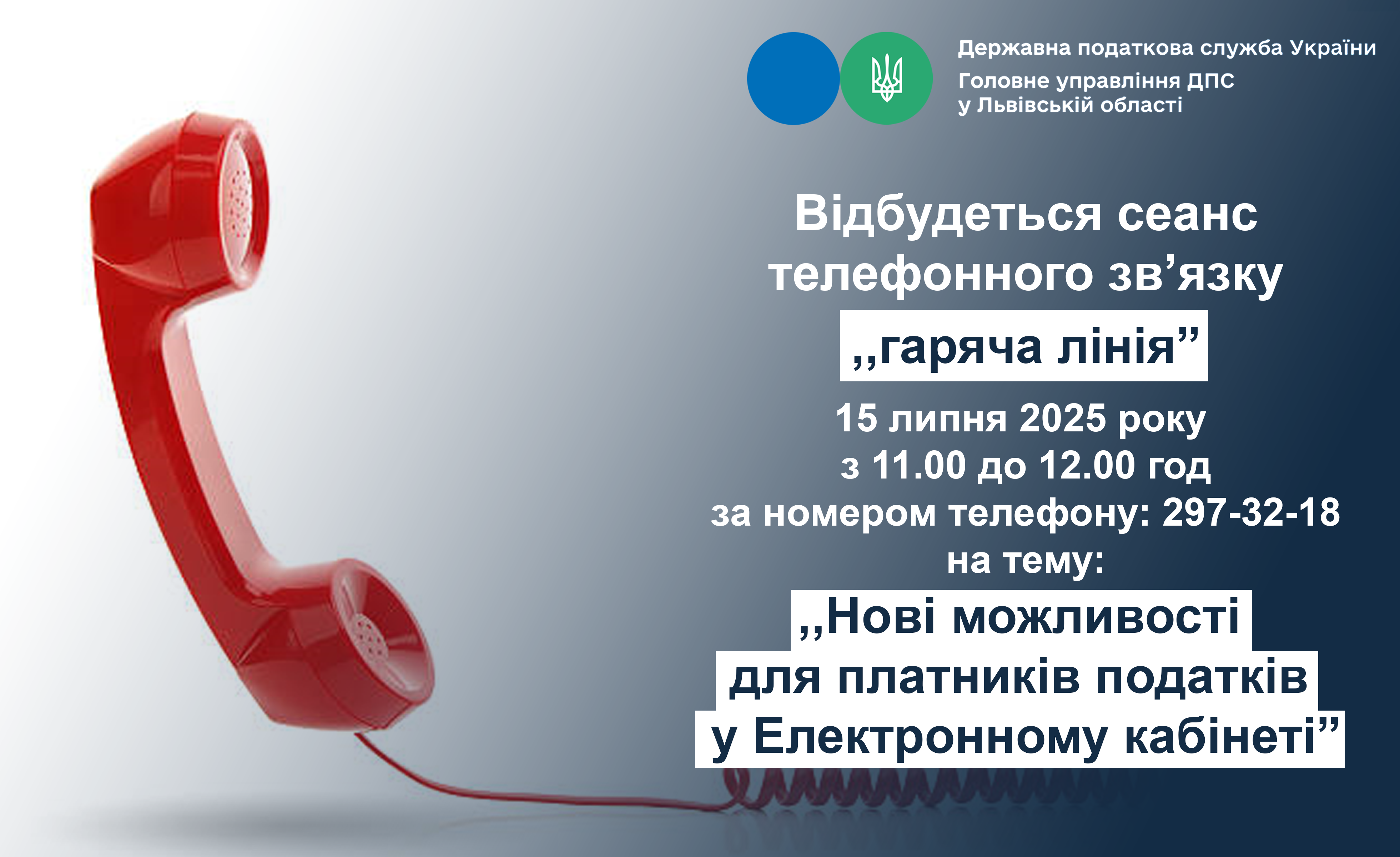 Відбудеться сеанс телефонного зв`язку "гаряча лінія" на тему "Нові можливості для платників податків у Електронному кабінеті"