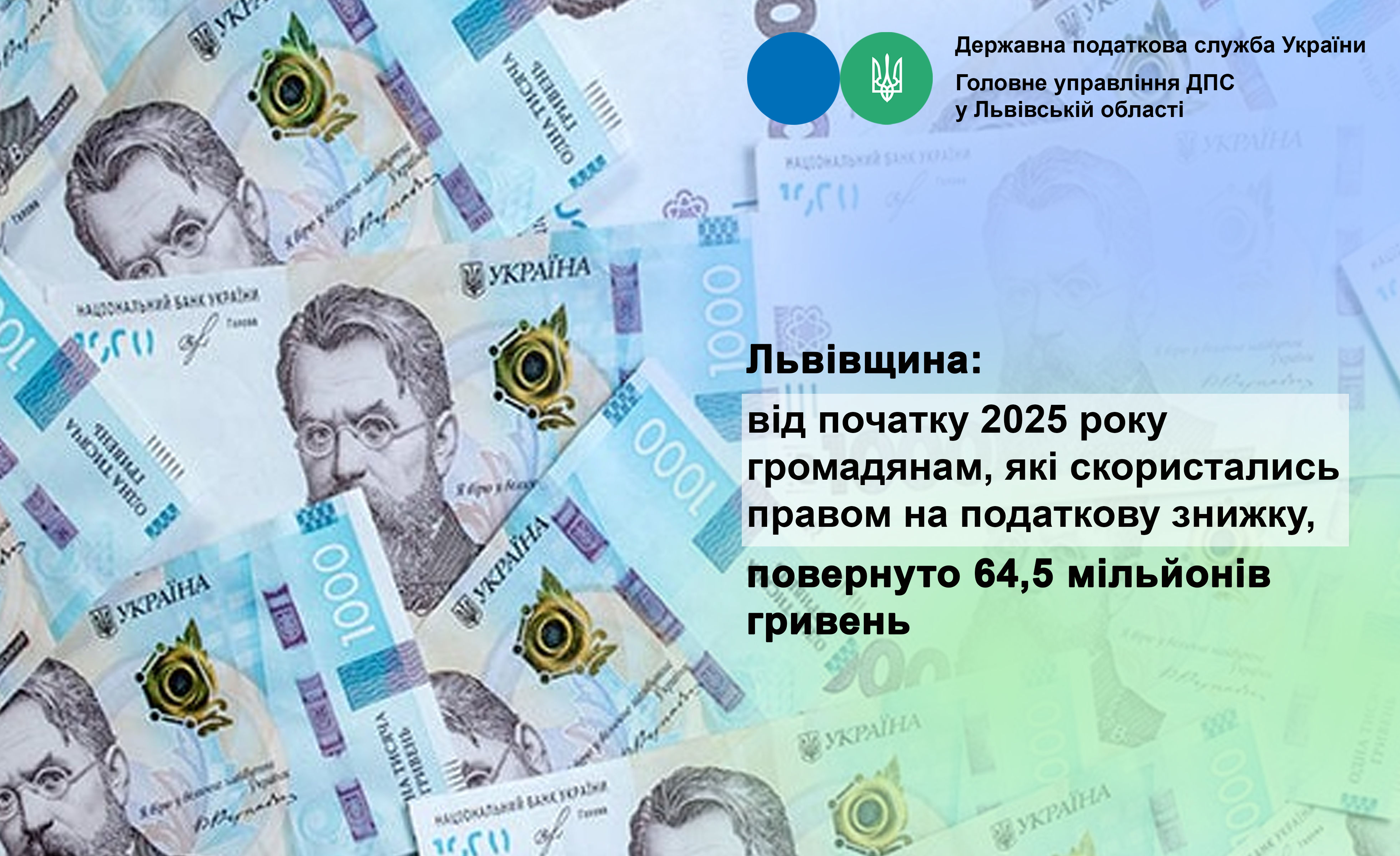 Львівщина: від початку 2025 року громадянам, які скористались правом на податкову знижку, повернуто 64,5 мільйонів гривень