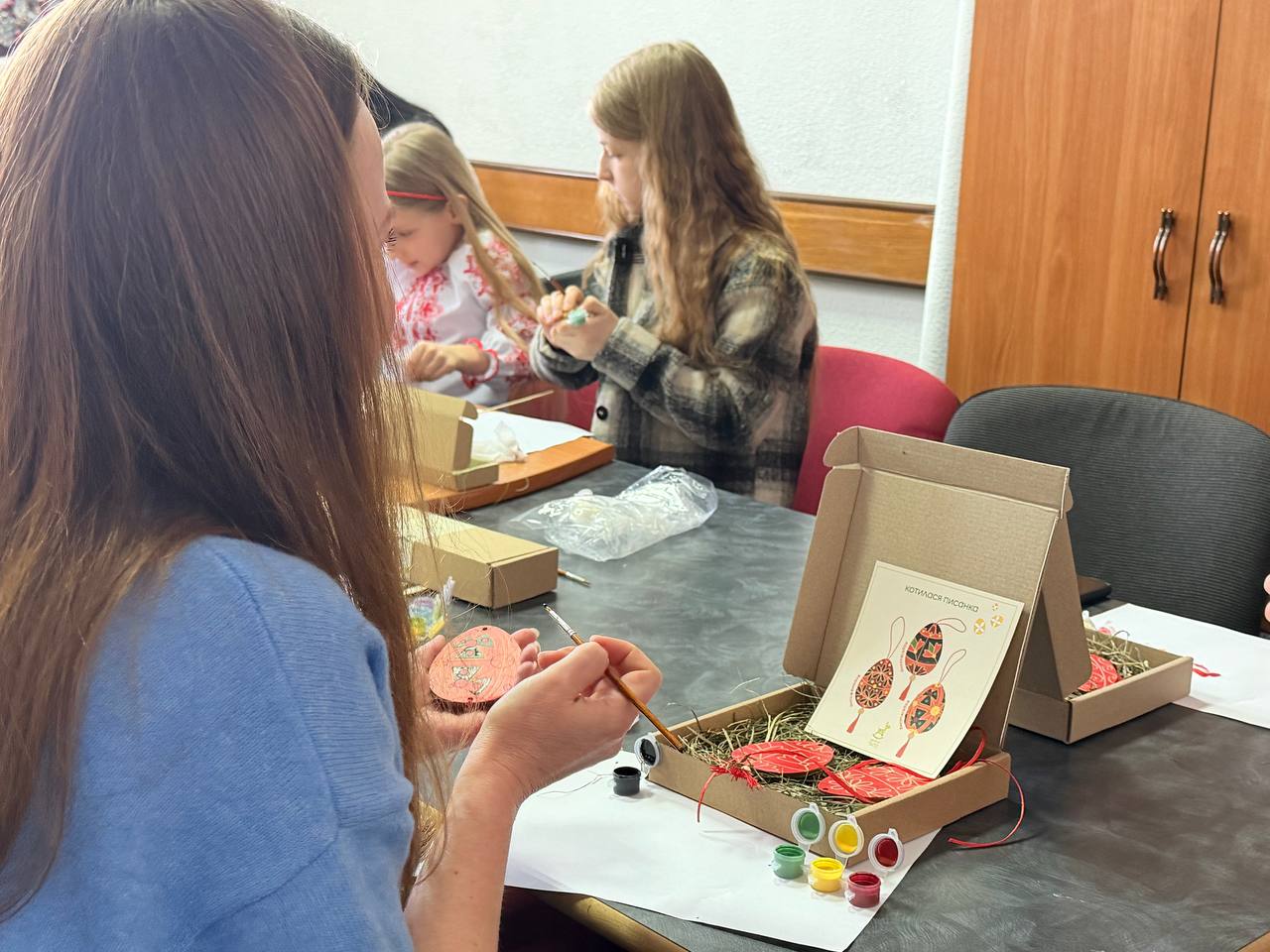 Юні учасники майстер-класів розмальовували писанки, вербову баську. Допомагала їм, розповідаючи про традиції писанкарства у різних регіонах України, майстриня Марія Гром.