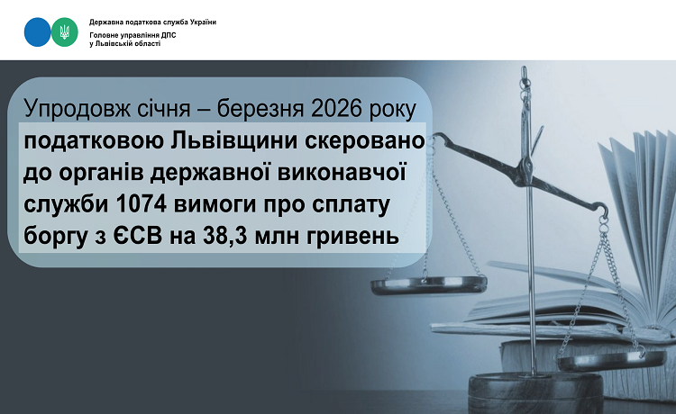 З метою зменшення заборгованості по єдиному внеску та недопущення її зростання в подальшому, за даними територіальних підрозділів, протягом 2026 року скеровано до органів державної виконавчої служби 1074вимоги про сплату недоїмки з єдиного внеску на загальну суму 38,3млн гривень. Стягнено боргу з єдиного внеску органами державної виконавчої служби згідно з переданими вимогами на загальну суму 10,2 млн гривень.