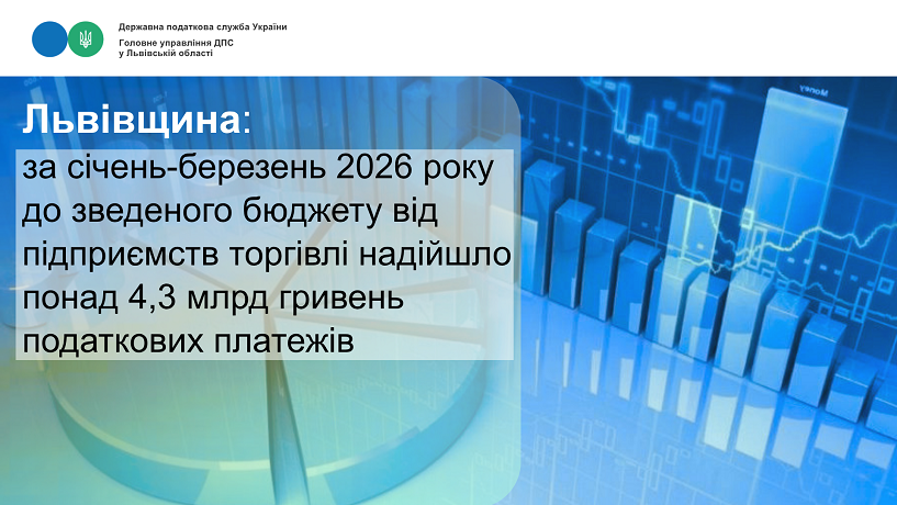 Львівщина: за січень-березень 2026 року до зведеного бюджету від підприємств торгівлі надійшло понад 4,3 млрд гривень податкових платежів