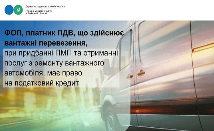 Тобто, фізична особа – підприємець, платник ПДВ, що здійснює вантажні перевезення при придбанні паливно-мастильних матеріалів та отриманні послуг з ремонту вантажного автомобіля, який оформлено на підприємця або не є його власністю, формує податковий кредит на підставі податкової накладної, складеної та зареєстрованої в ЄРПН платником податку, який здійснює операції з постачання товарів/послуг.