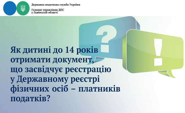 Як дитині до 14 років отримати документ, що засвідчує реєстрацію у Державному реєстрі фізичних осіб – платників податків?