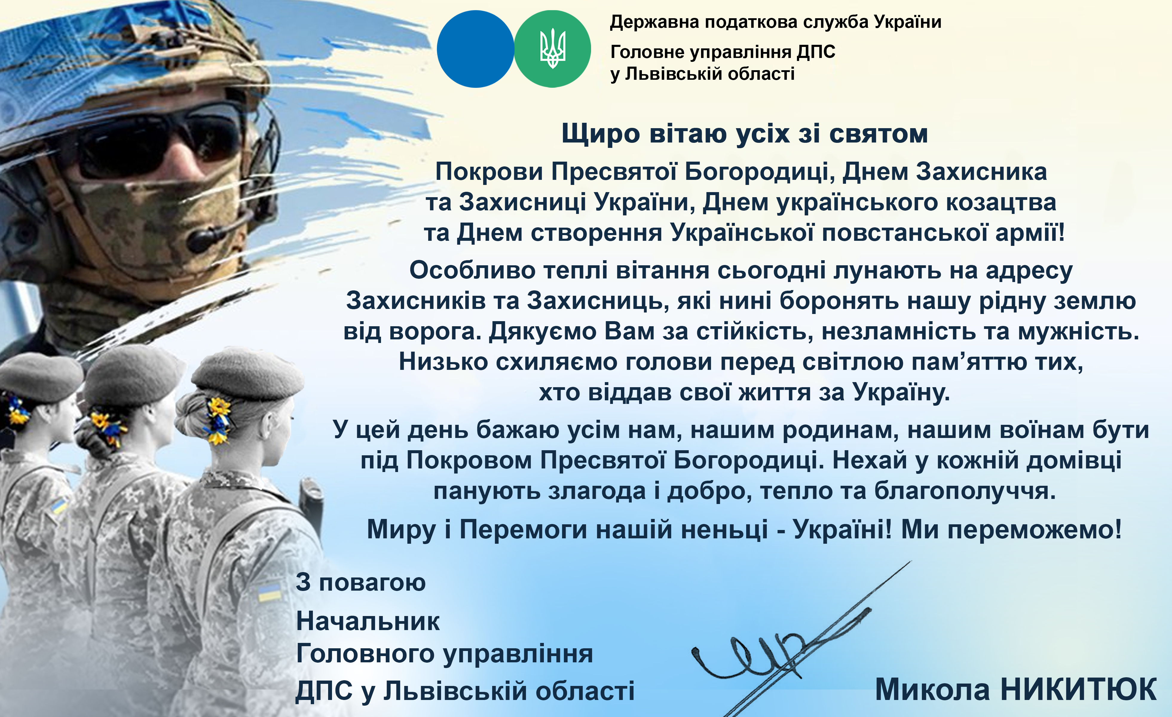Привітання з Днем Захисника та Захисниці України