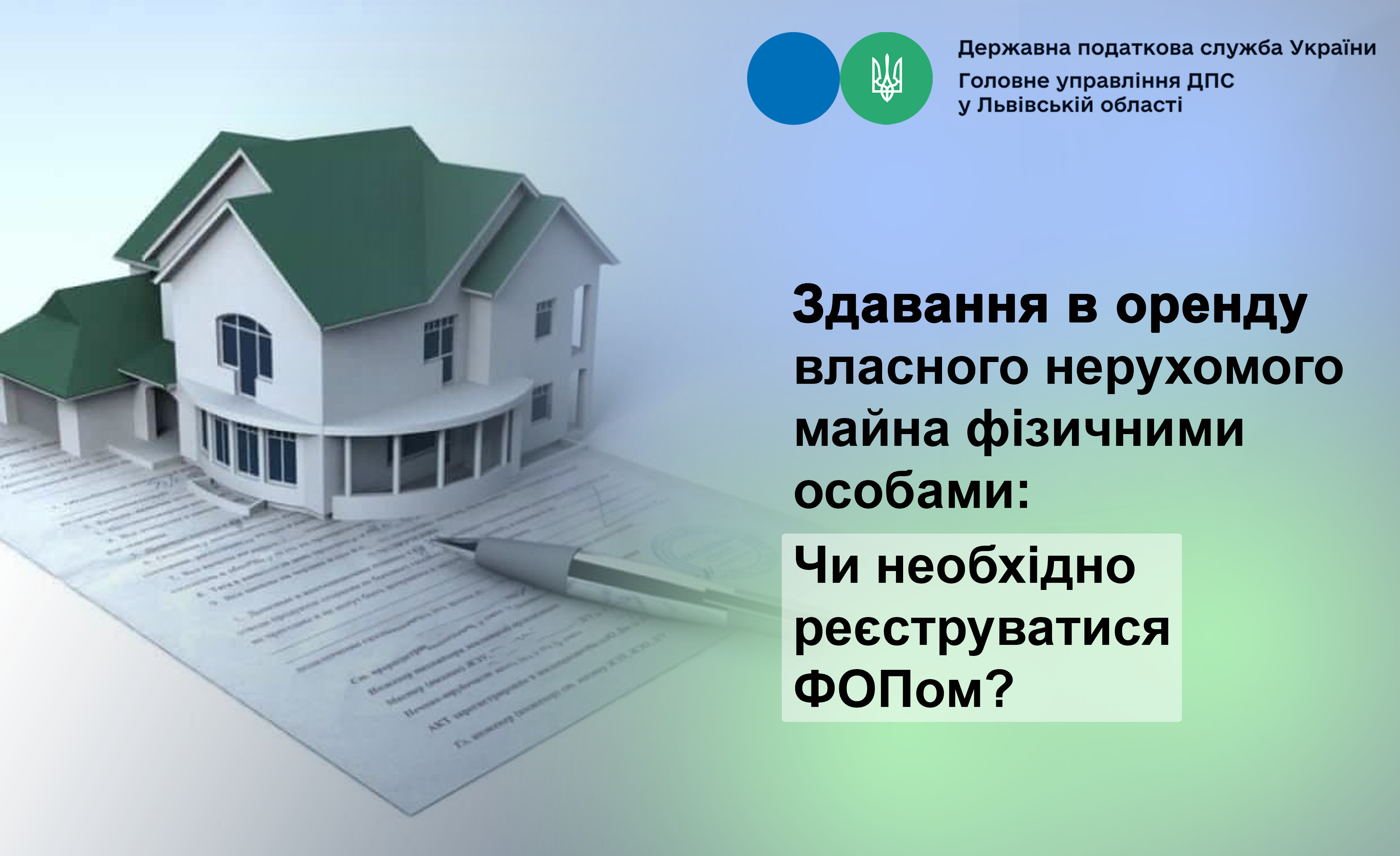 Головне управління ДПС у Львівській області інформує, що здавання в оренду власного нерухомого майна може здійснюватися фізичними особами як у межах підприємницької діяльності, так і шляхом виконання норм п. 170.1 ст. 170 розд. IV Податкового кодексу України від 02 грудня 2010 року № 2755-VI (далі - ПКУ) без реєстрації орендодавця фізичною особою – підприємцем.