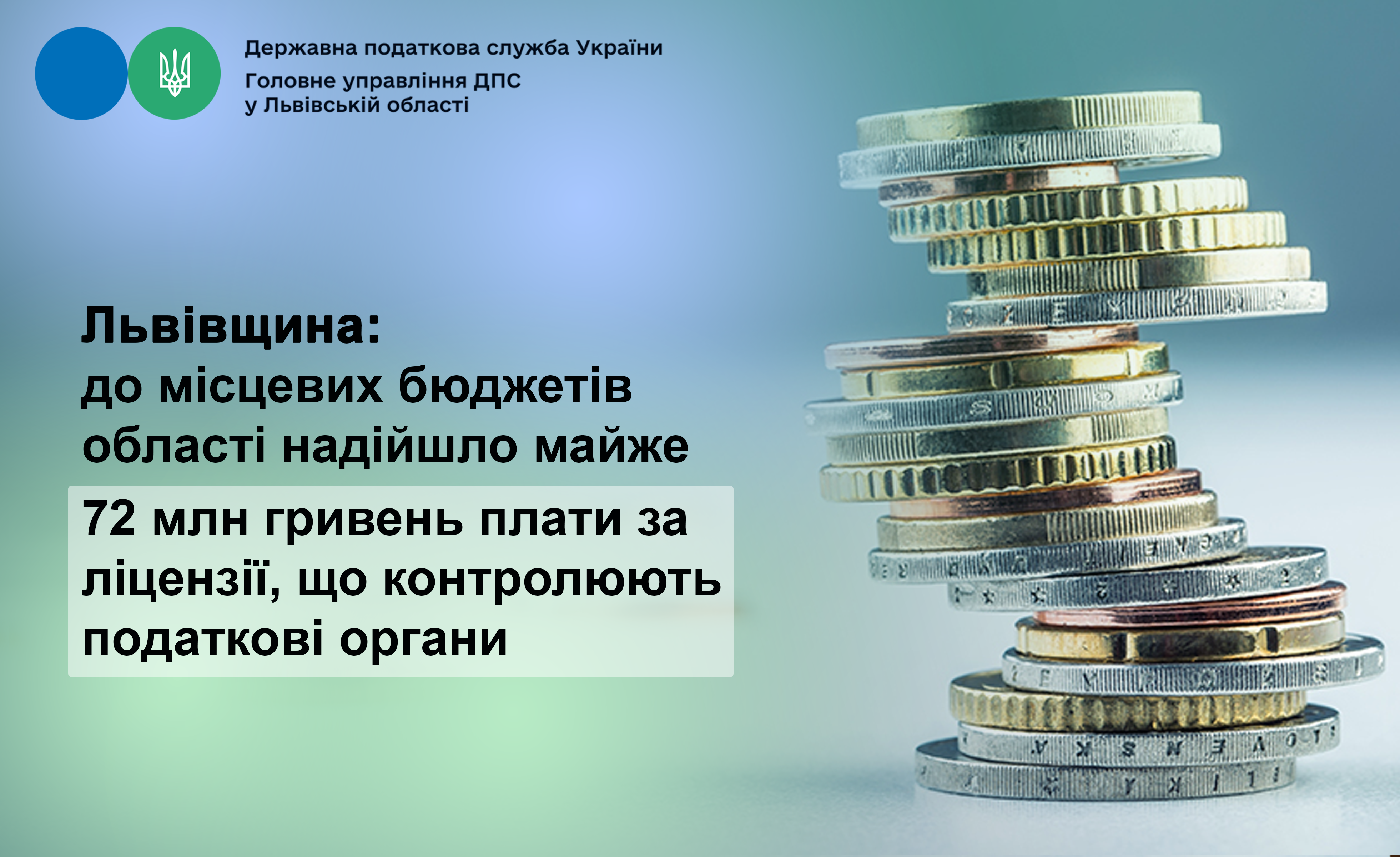 Львівщина: до місцевих бюджетів області надійшло майже 72 млн гривень плати за ліцензії, що контролюють податкові органи