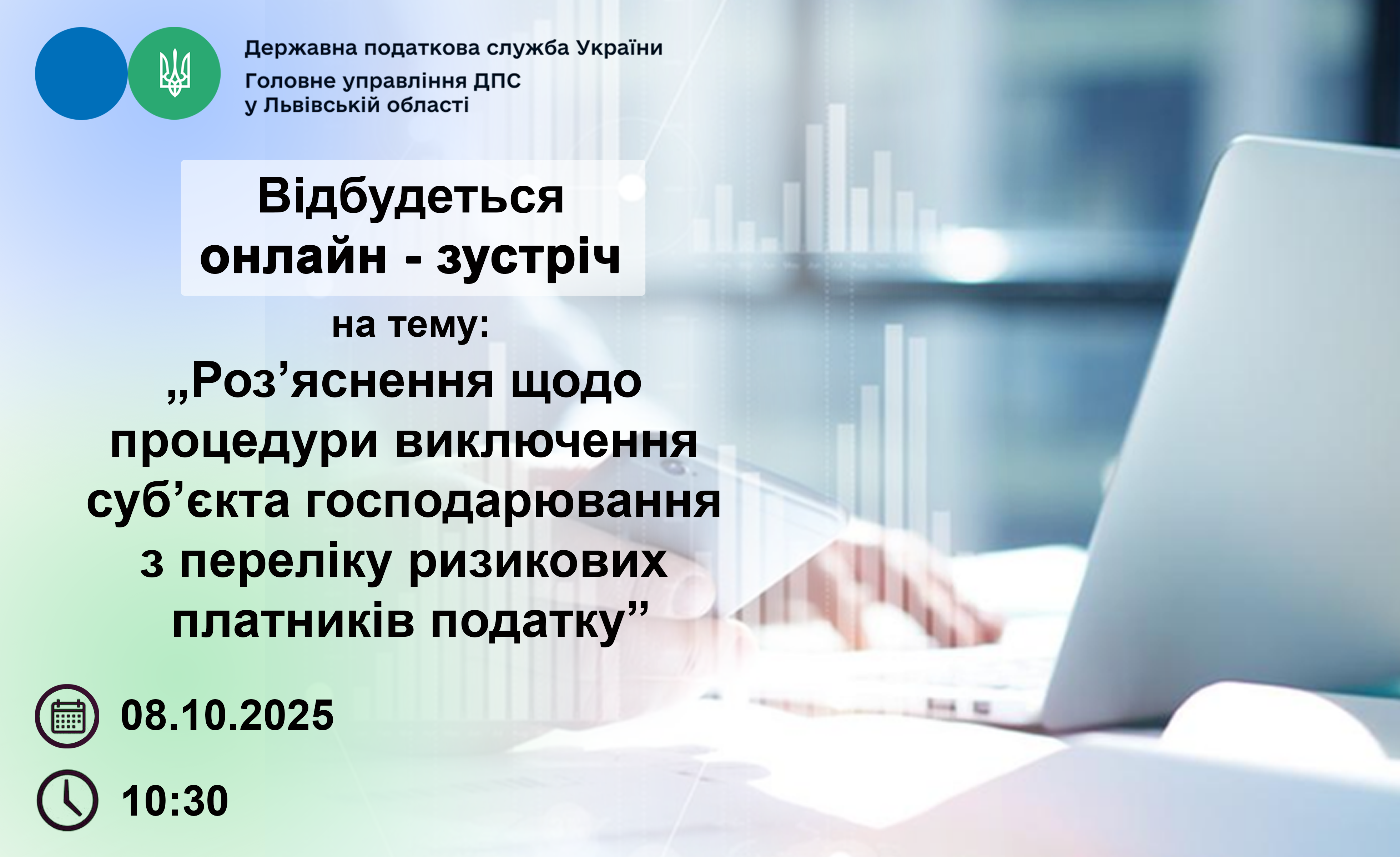 8 жовтня 2025 року Головним управлінням ДПС у Львівській області буде проведено онлайн – зустріч,  для платників податків Львівської області на тему: