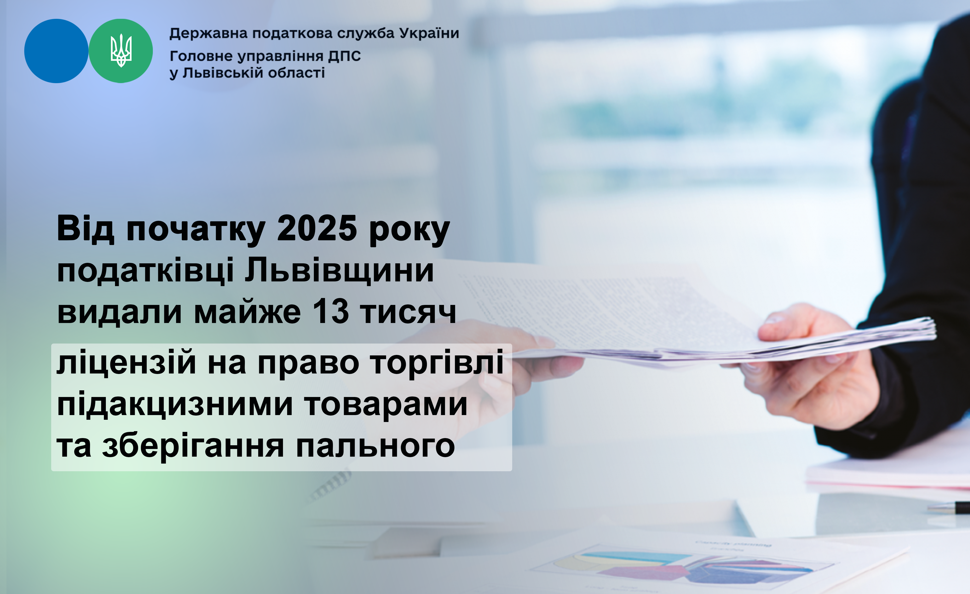 За січень-вересень 2025 року працівниками відділу ліцензування торгівлі підакцизними товарами та зберігання пального управління контролю за підакцизними товарами Головного управління ДПС у Львівській області видано 12 746 ліцензій на право торгівлі підакцизними товарами та зберігання пального, внесено змін до відомостей, що містяться в Єдиному реєстрі ліцензіатів – 2 147 ліцензій на право торгівлі підакцизними товарами та зберігання пального,  внесено 15 856 чергових платежів за ліцензії, внесено 65 місць зберігання алкогольних напоїв та тютюнових виробів до Єдиного  реєстру місць зберігання.