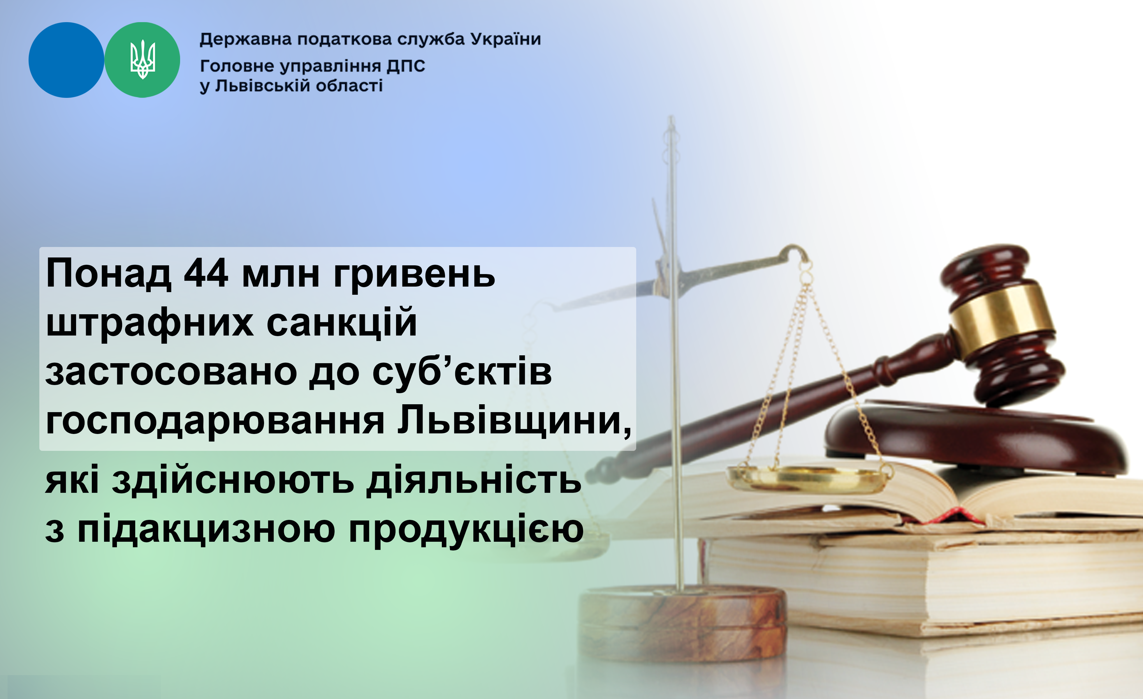 - Понад 44 млн гривень штрафних санкцій застосовано до суб’єктів господарювання Львівщини, які здійснюють діяльність з підакцизною продукцією