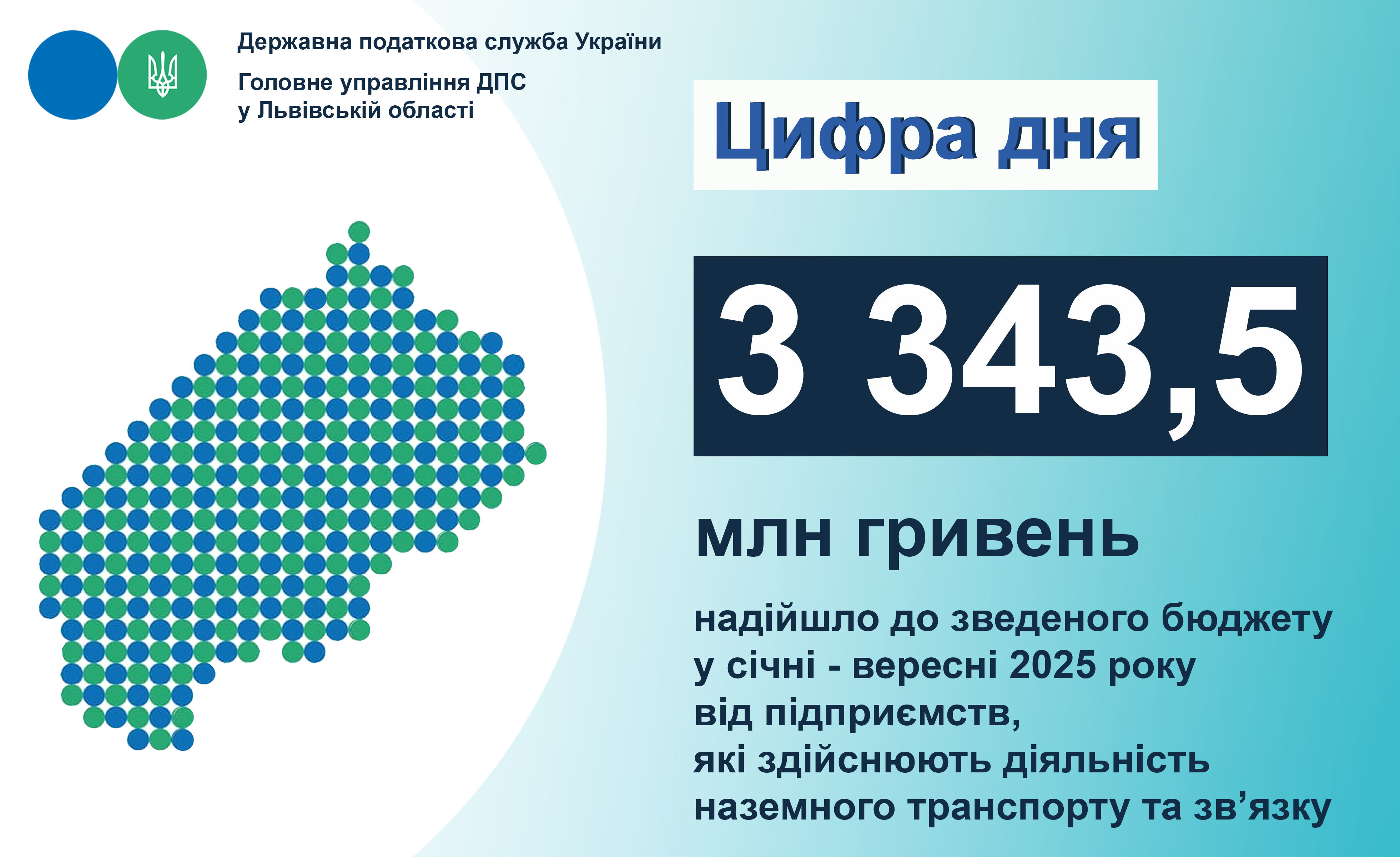 Від підприємств, які здійснюють діяльність наземного транспорту та зв’язку,у січні-вересні 2025 року до зведеного бюджету надійшло 3 343,5 млн грн. податкових платежів. Це на 847,5 млн грн або на 34,0 відсотка більше, ніж у січні-вересні 2024 року.
