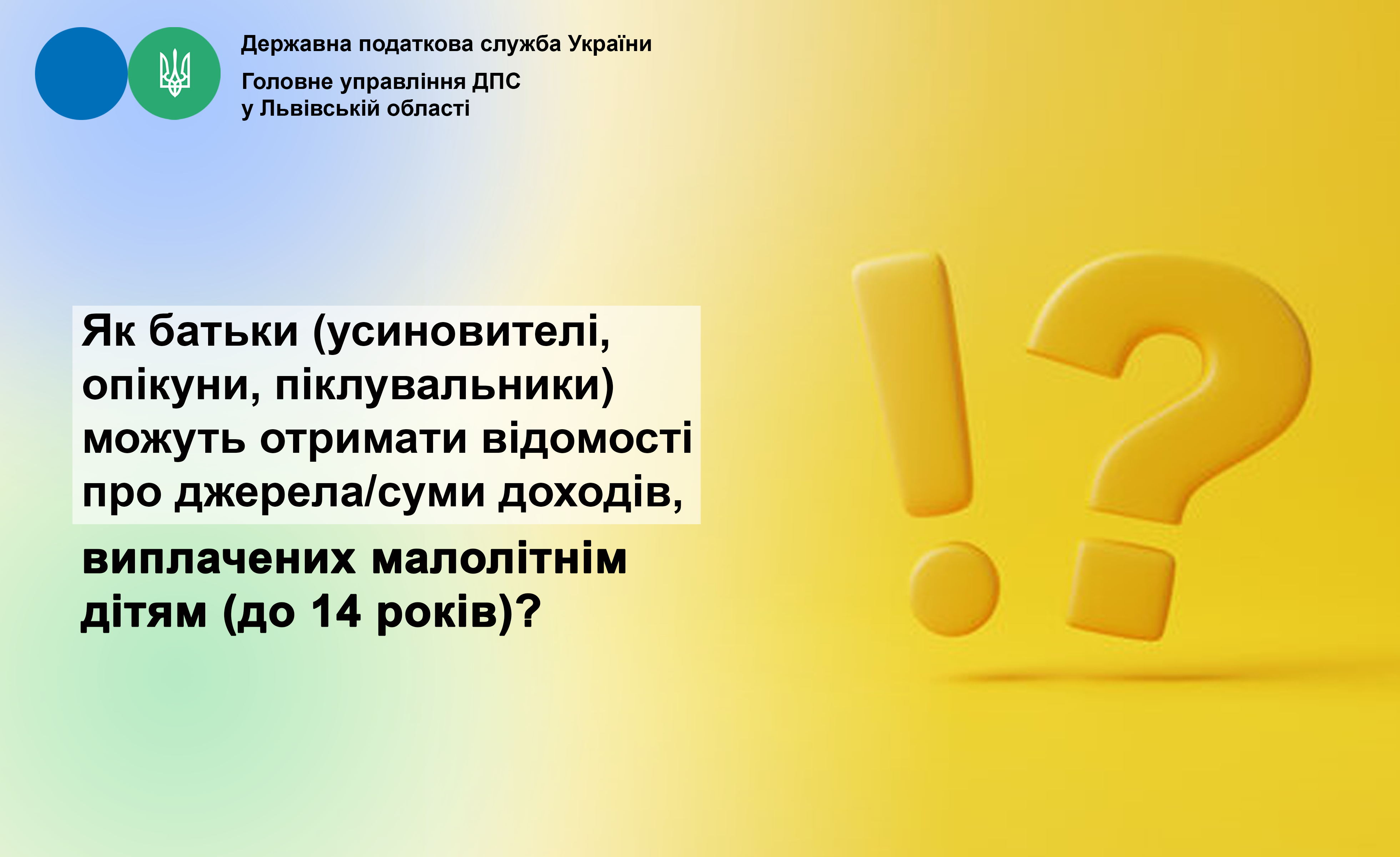 Як батьки (усиновителі, опікуни, піклувальники) можуть отримати відомості про джерела/суми доходів, виплачених малолітнім дітям (до 14 років)?