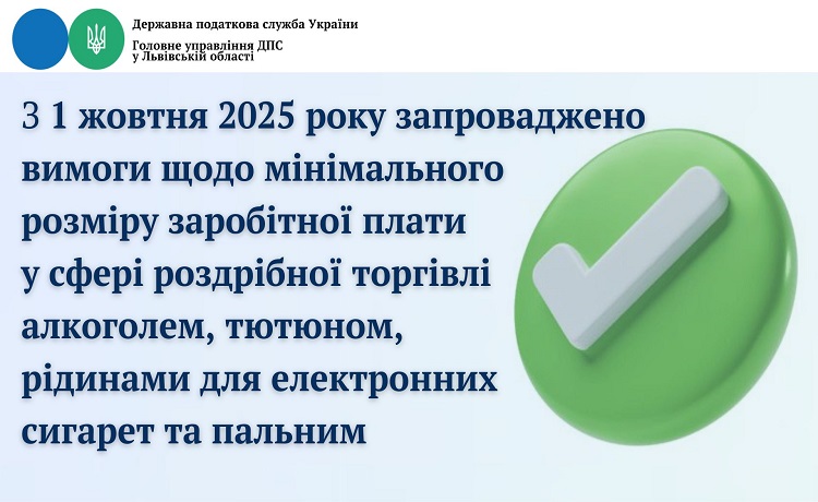 Для суб’єктів господарювання, які вроздріб торгують алкогольними напоями, тютюновими виробами, рідинами для електронних сигарет та пальним, з 1 жовтня 2025 року запроваджено вимоги щодо мінімального розміру середньої щомісячної заробітної плати або загального місячного оподатковуваного доходу.