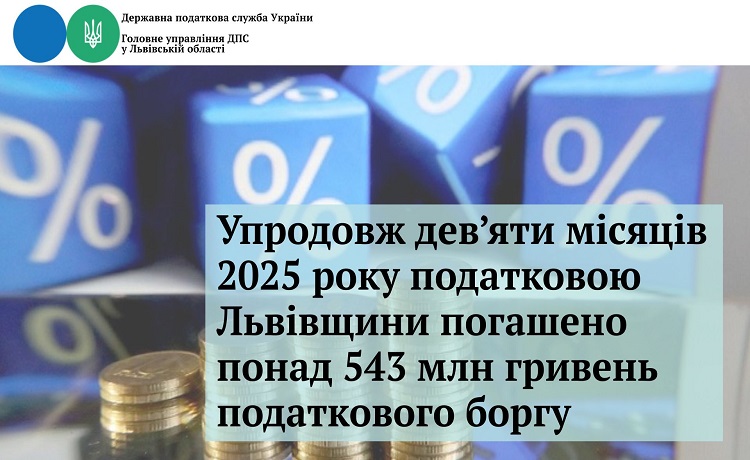 В результаті цих та інших заходів протягом січня-вересня 2025 року погашення податкового боргу живими коштами становить 543,3 млн грн (стягнення грошових коштів інкасовими дорученнями, сплата розстрочених податків та самостійне погашення боргу, інше).