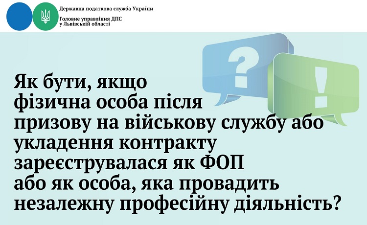 - Як бути, якщо фізична особа після призову на військову службу або укладення контракту зареєструвалася як ФОП або як особа, яка провадить незалежну професійну діяльність?