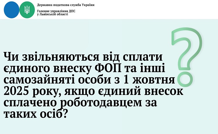 Відповідно до положень Закону України від 16 липня 2025 року № 4536-ІХ, з 1 жовтня 2025 року звільняються від сплати єдиного внеску за себе фізичні особи – підприємці та інші самозайняті особи при виконанні таких умов: