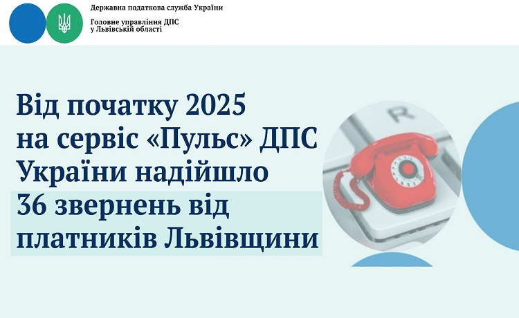 Від початку 2025 на сервіс «Пульс» Державної податкової служби України надійшло 36 звернень від платників  Львівщини