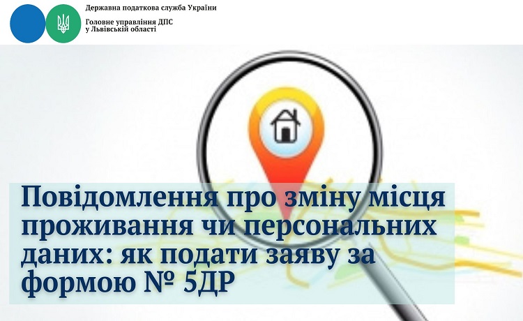 Фізична особа – платник податків у разі зміни місця проживання, перейменування назви міста чи вулиці, зміни податкової адреси, імені або прізвища зобов’язана повідомити про це органи податкової служби шляхом подання заяви за ф. № 5ДР.