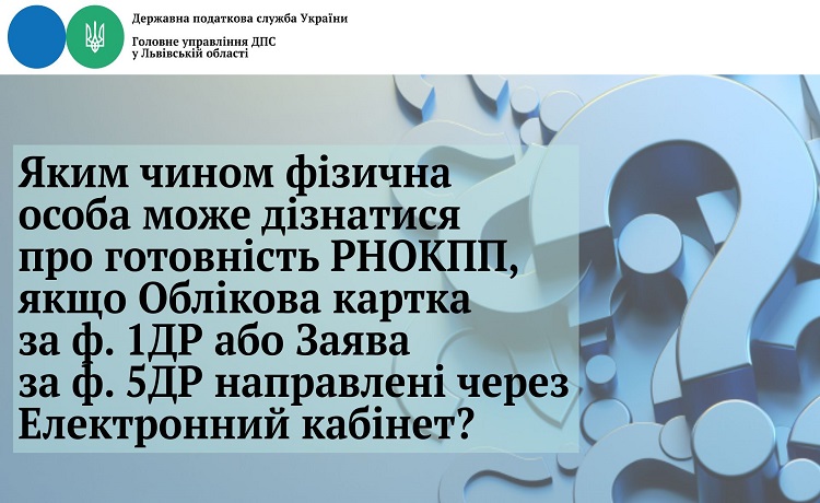 Фізичні особи – платники податків можуть подати Облікову картки за ф. № 1ДР, заяву за ф. № 5ДР та скановані копії документів через приватну частину Електронного кабінету, вхід до якої здійснюється за адресою: cabinet.tax.gov.ua, а також через вебпортал ДПС.