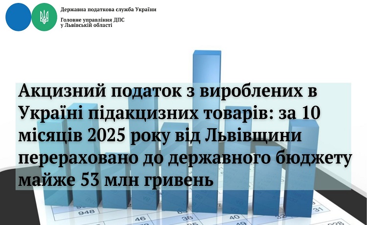 - Акцизний податок з вироблених в Україні підакцизних товарів: за 10 місяців 2025 року від Львівщини перераховано до державного бюджету майже 53 млн гривень