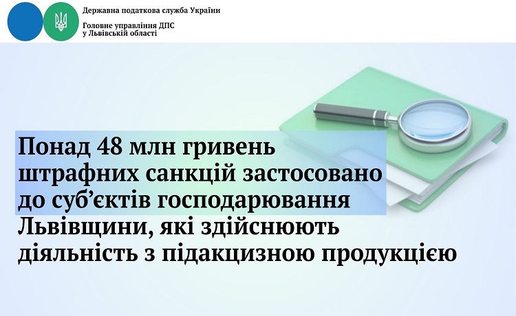 - Понад 48 млн гривень штрафних санкцій застосовано до суб’єктів господарювання Львівщини, які здійснюють діяльність з підакцизною продукцією