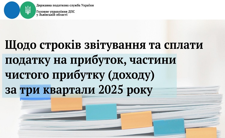 Головне управління ДПС у Львівській області звертає увагу суб'єктів господарювання, що триває звітна кампанія декларування податку на прибуток підприємств та частини чистого прибутку (доходу) за три квартали 2025 року.