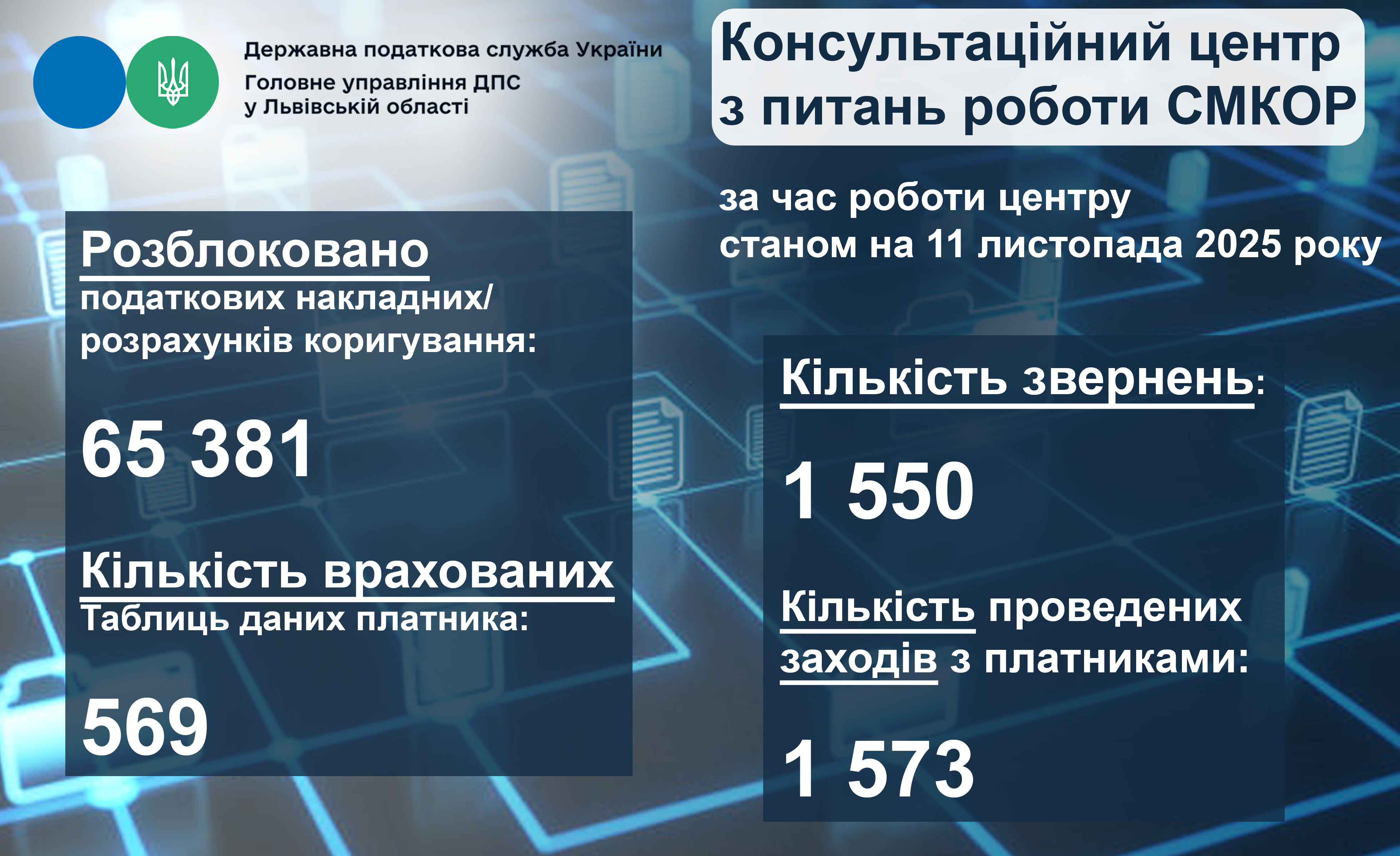Результати роботи консультаційного центру СМКОР на Львівщині: розблоковано понад 65 тисяч податкових накладних