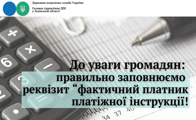 До уваги громадян: правильно заповнюємо реквізит “фактичний платник” платіжної інструкції!