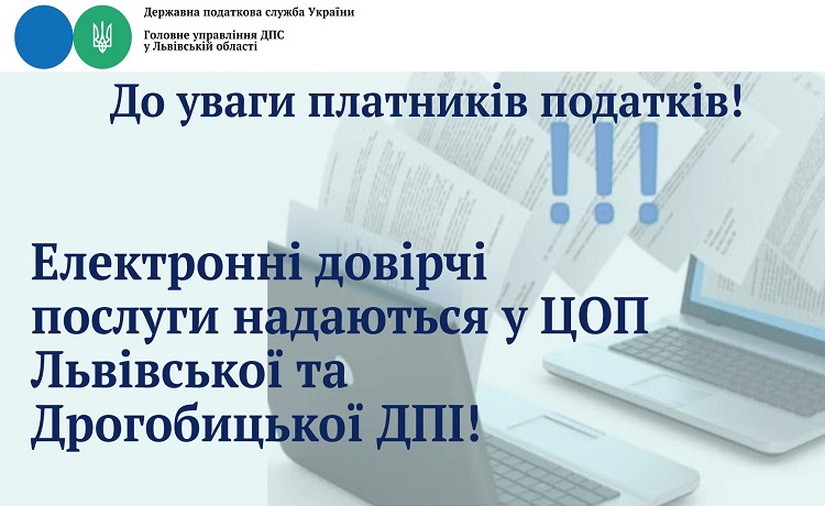 Головне управління ДПС у Львівській області звертає увагу платників податків та громадян, що електронні довірчі послуги надаються у двох пунктах обслуговування, які знаходяться в Центрах обслуговування платників податків Львівської  та Дрогобицької ДПІ (далі – ЦОП) за адресами: