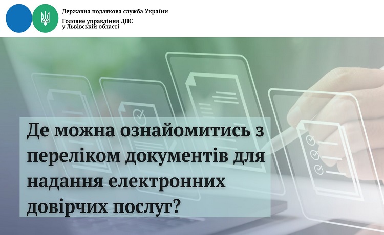 Перелік документів для надання електронних довірчих послуг розміщений на сайті Кваліфікованого надавача електронних довірчих послуг Державної податкової служби України (КНЕДП ДПС) за покликанням https://ca.tax.gov.ua у розділі "Отримання кваліфікованих електронних довірчих послуг.