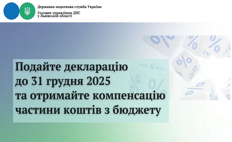 Головне управління ДПС у Львівській області нагадує, що до 31 грудня включно необхідно подати податкову декларацію про майновий стан і доходи для отримання компенсації частини коштів з бюджету.