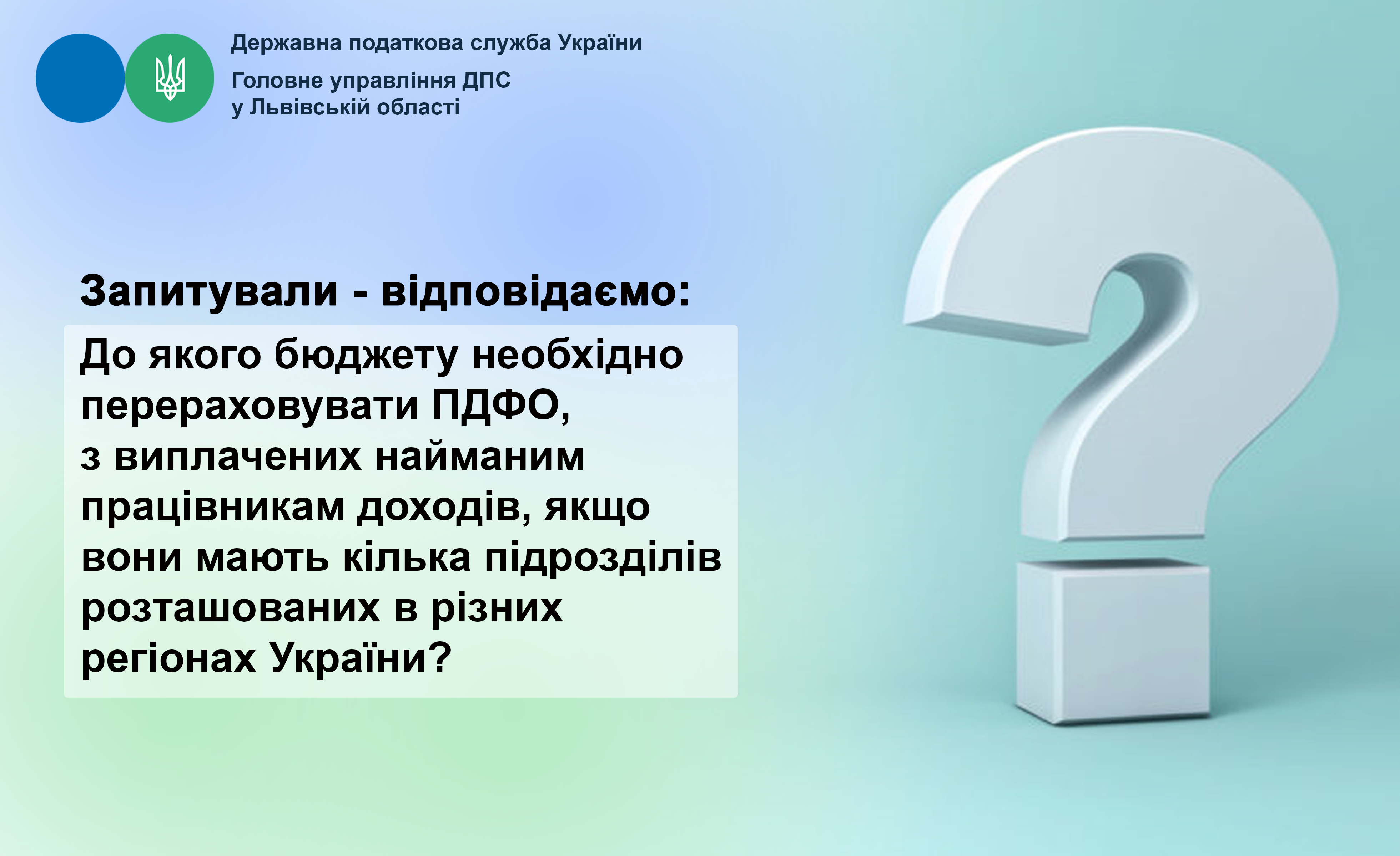 Запитували-відповідаємо: до якого бюджету необхідно перераховувати ПДФО, з виплачених найманим працівникам доходів, якщо вони мають кілька підрозділів розташованих в різних регіонах України?