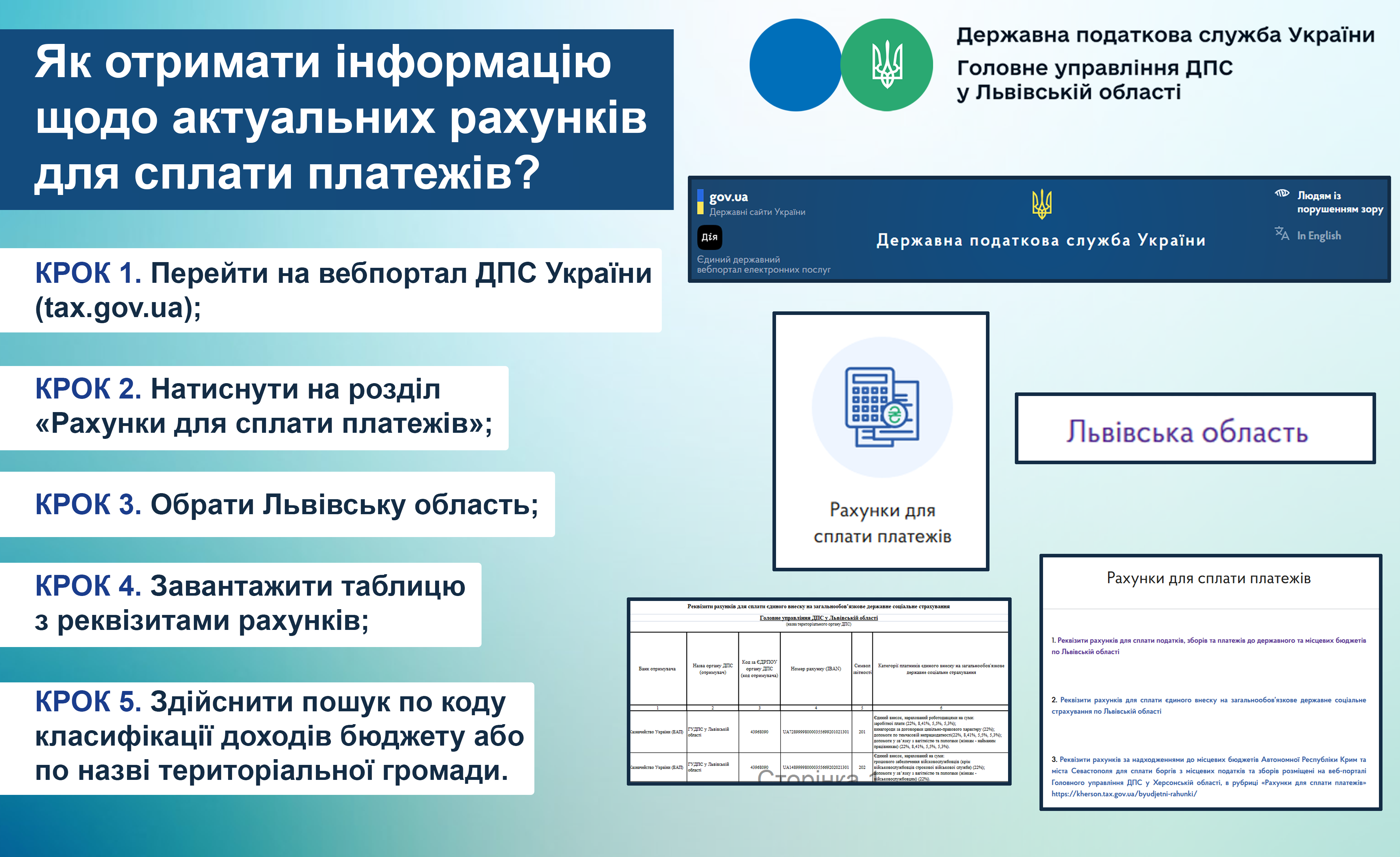 Як отримати інформацію щодо актуальних рахунків для сплати платежів?
