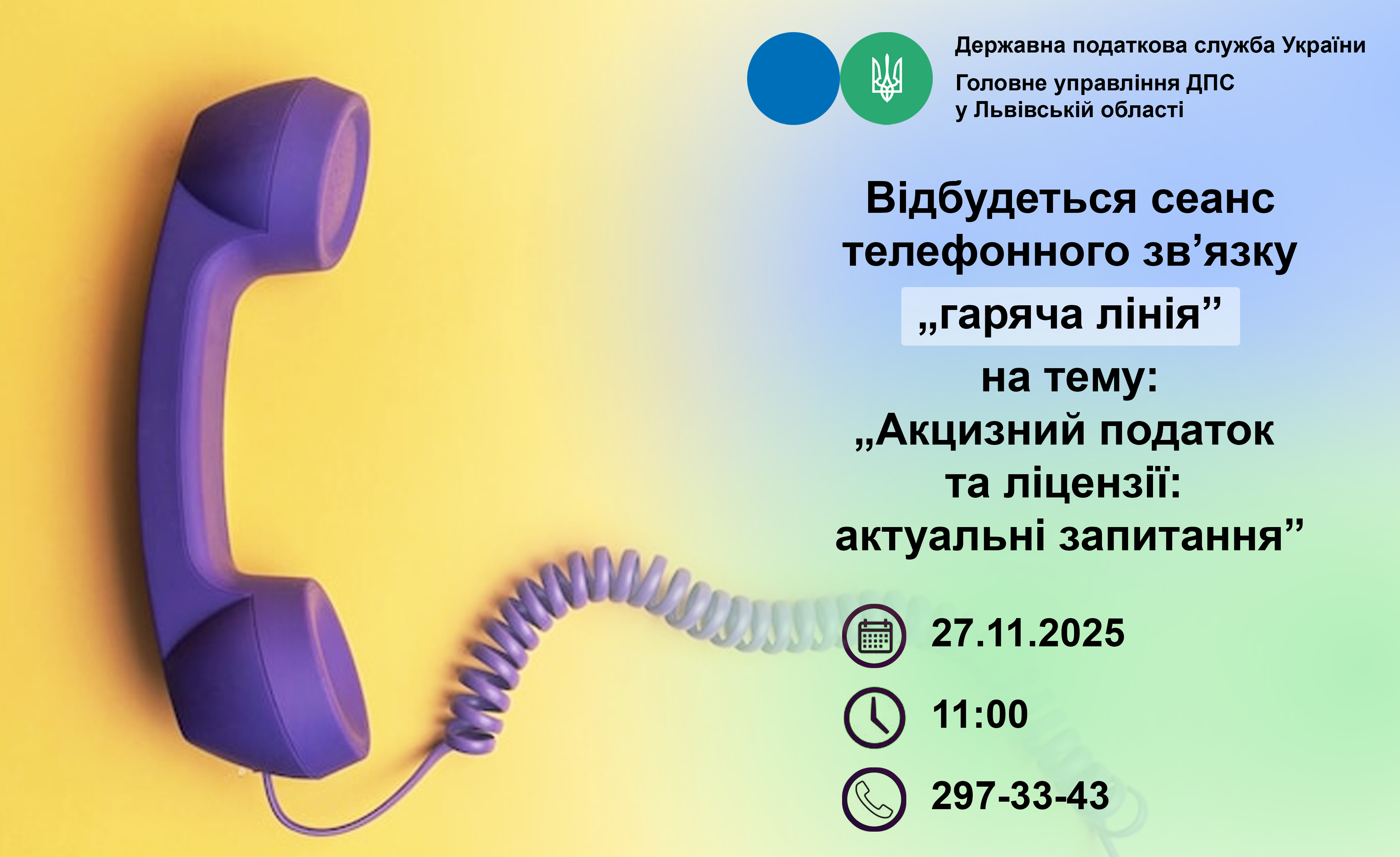 Відбудеться сеанс телефонного зв'язку ,,гаряча лінія” на тему: ,,Акцизний податок та ліцензії: актуальні запитання”