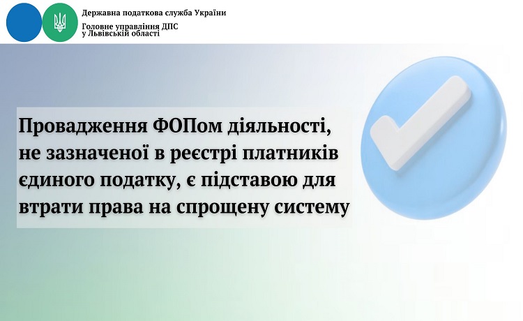 ФОПи, які перебувають на спрощеній системі оподаткування, не мають права здійснювати види господарської діяльності, не внесені до їхніх облікових даних та які відсутні у реєстрі платників єдиного податку.