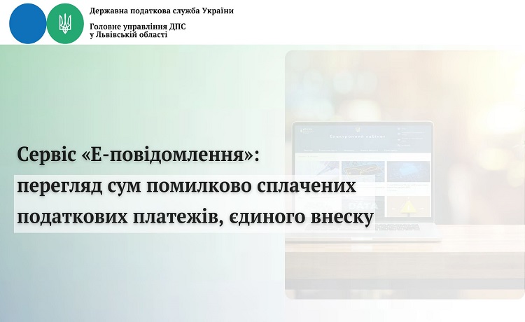 Головне управління ДПС у Львівській області інформує, що з метою підвищення рівня інформування платників податків про суми помилково сплачених податкових платежів, єдиного внеску працює новий сервіс «Е-повідомлення».
