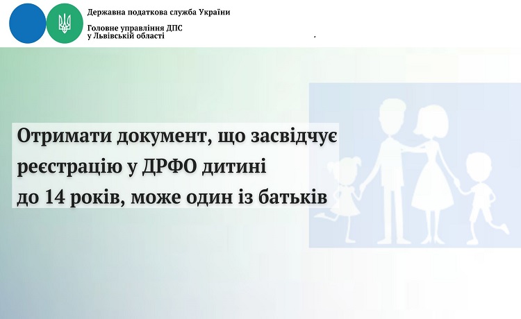 Отримати документ, що засвідчує реєстрацію у ДРФО дитині до 14 років, може один із батьків