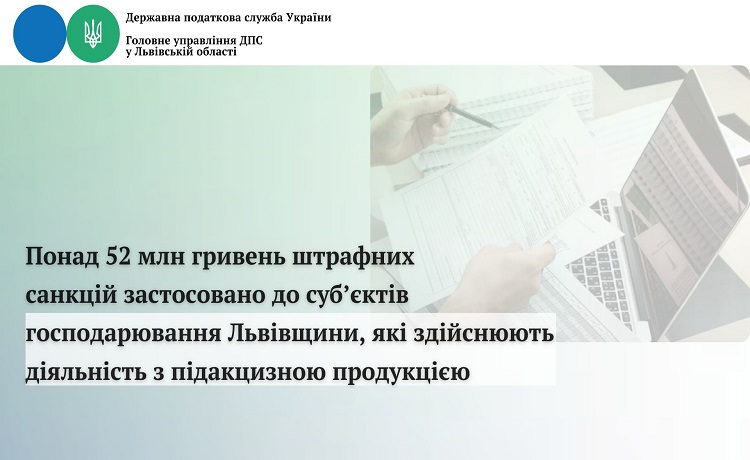 - Понад 52 млн гривень штрафних санкцій застосовано до суб’єктів господарювання Львівщини, які здійснюють діяльність з підакцизною продукцією