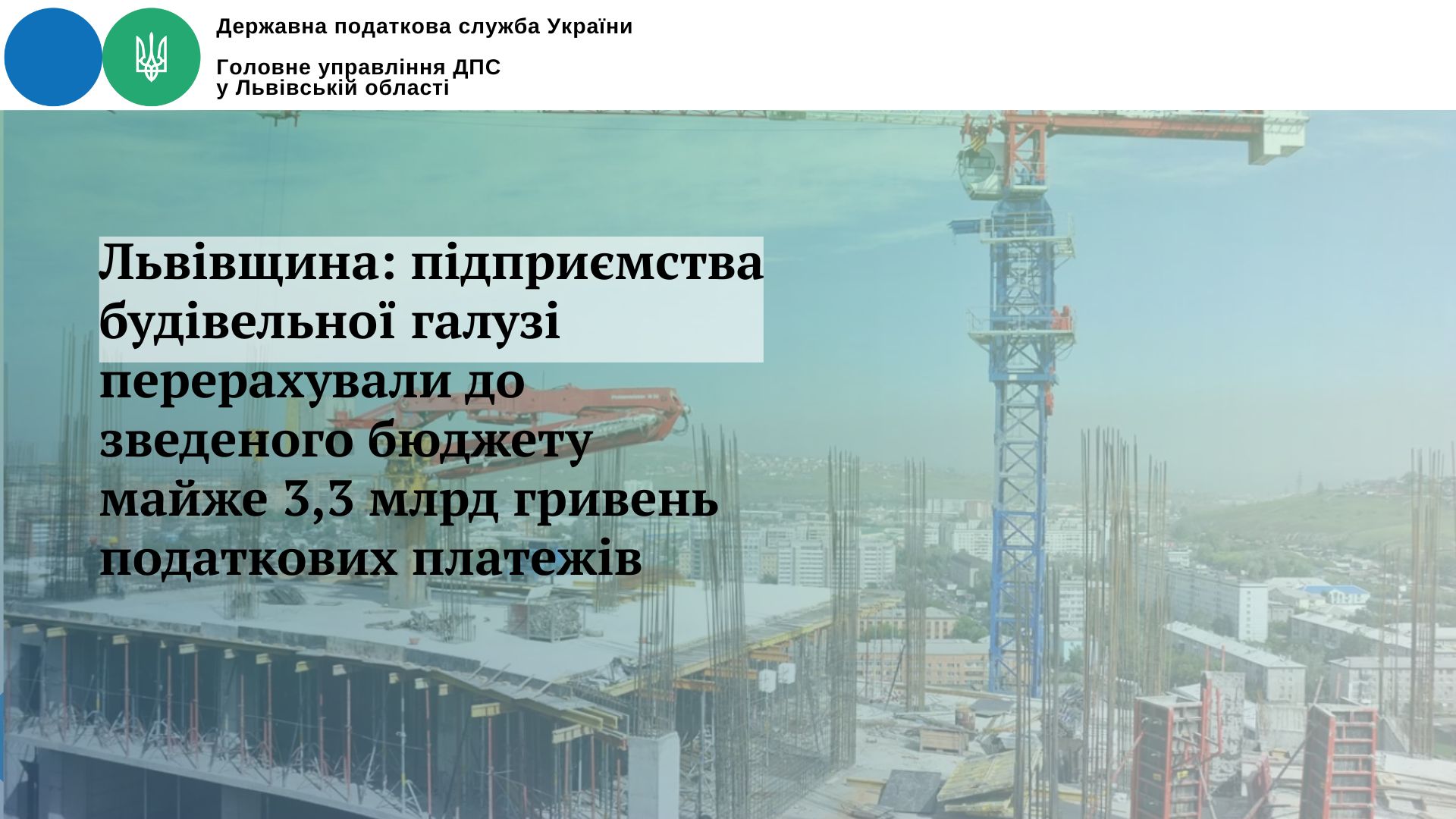 - Львівщина: підприємства будівельної галузі перерахували до зведеного бюджету майже 3,3 млрд гривень податкових платежів