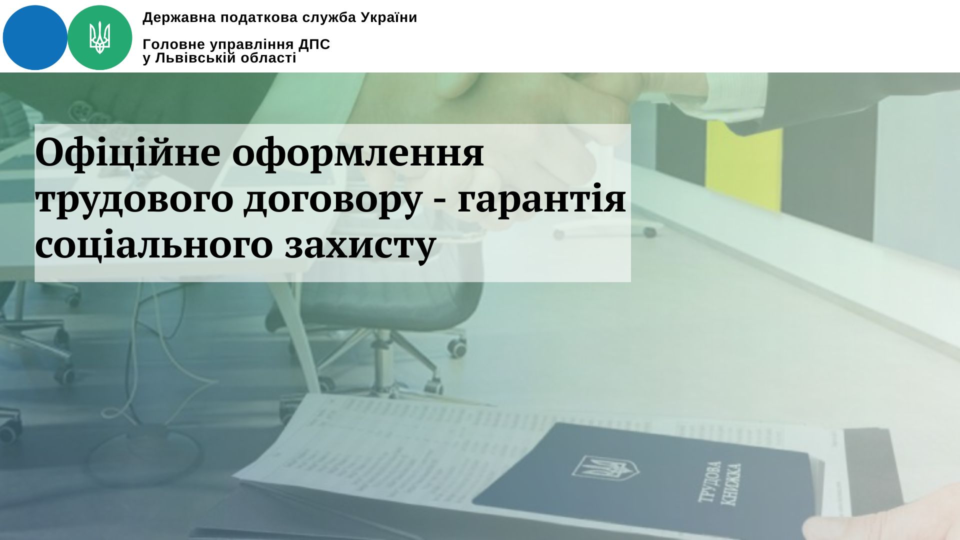Головне управління ДПС у Львівській області звертає увагу суб’єктів господарювання, що офіційно оформлений трудовий договір гарантує працівникам соціальний захист і збереження податкових прав.