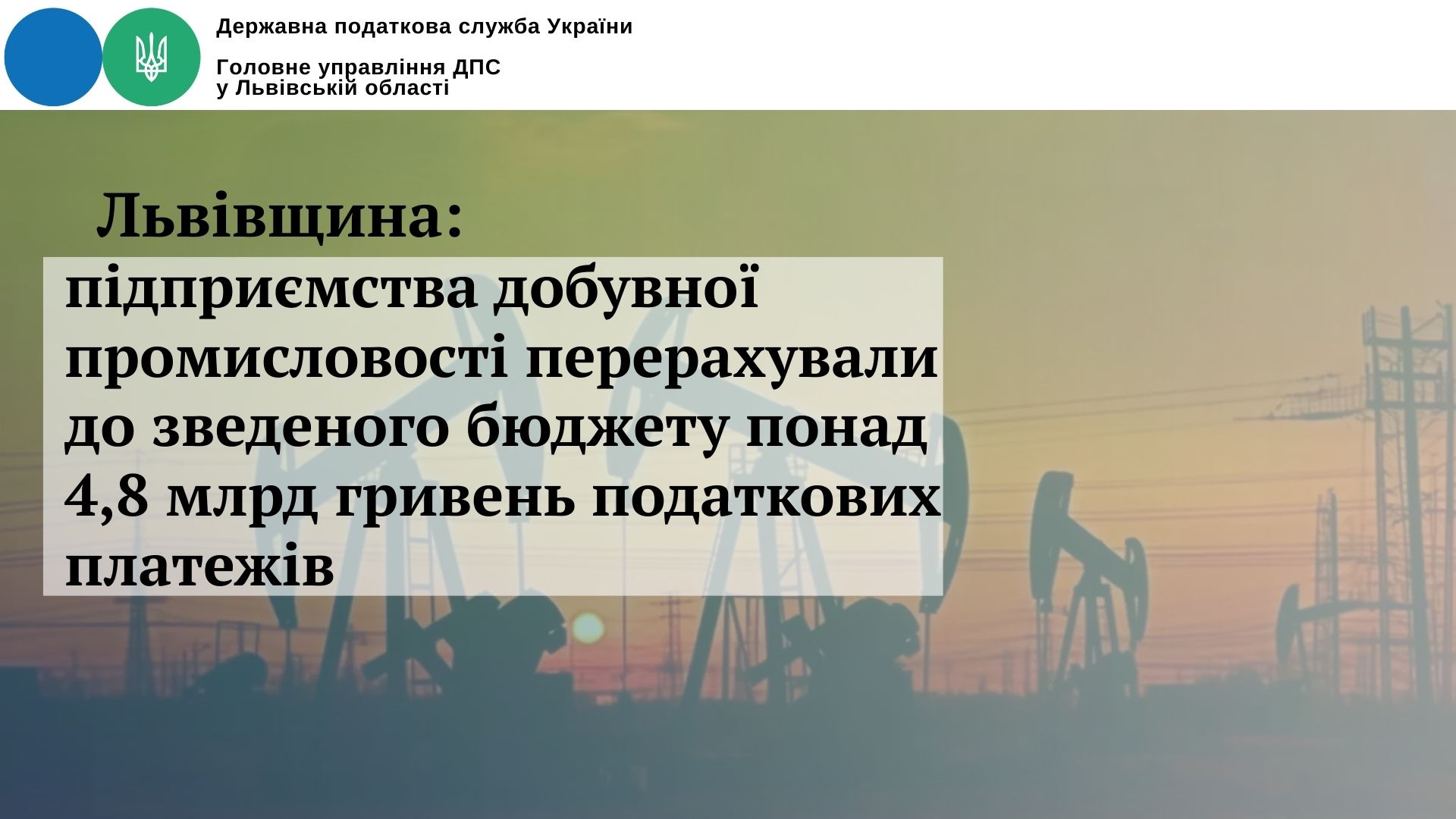 Упродовж січня-листопада 2025 року збір податкових платежів до зведеного бюджету по підприємствах добувної промисловості становив 4 839 млн гривень. Порівняно з аналогічним періодом 2024 року збір платежів збільшився на 36,8% або на1 300,8 млн гривень.