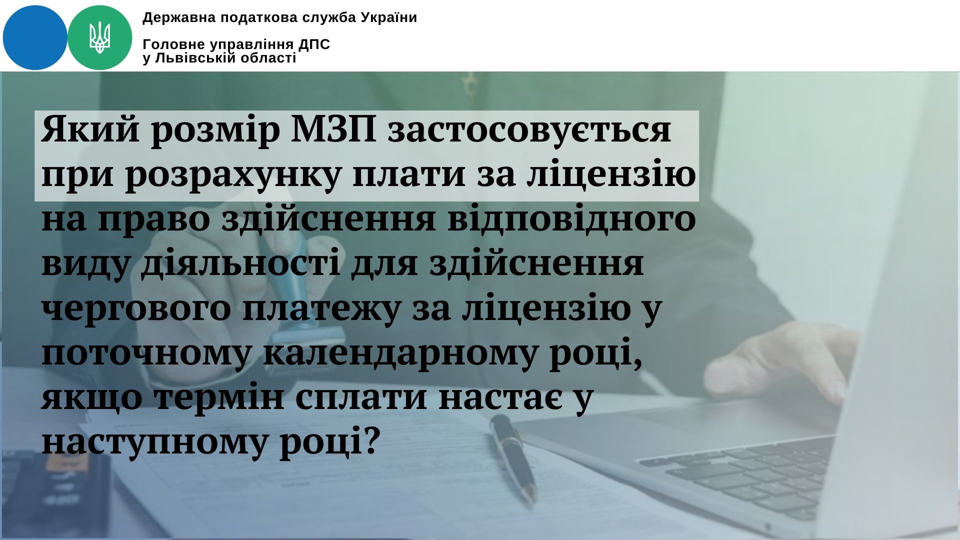 Який розмір мінімальної заробітної плати застосовується при розрахунку плати за ліцензію на право здійснення відповідного виду діяльності для здійснення чергового платежу за ліцензію у поточному календарному році, якщо термін сплати настає у наступному ро