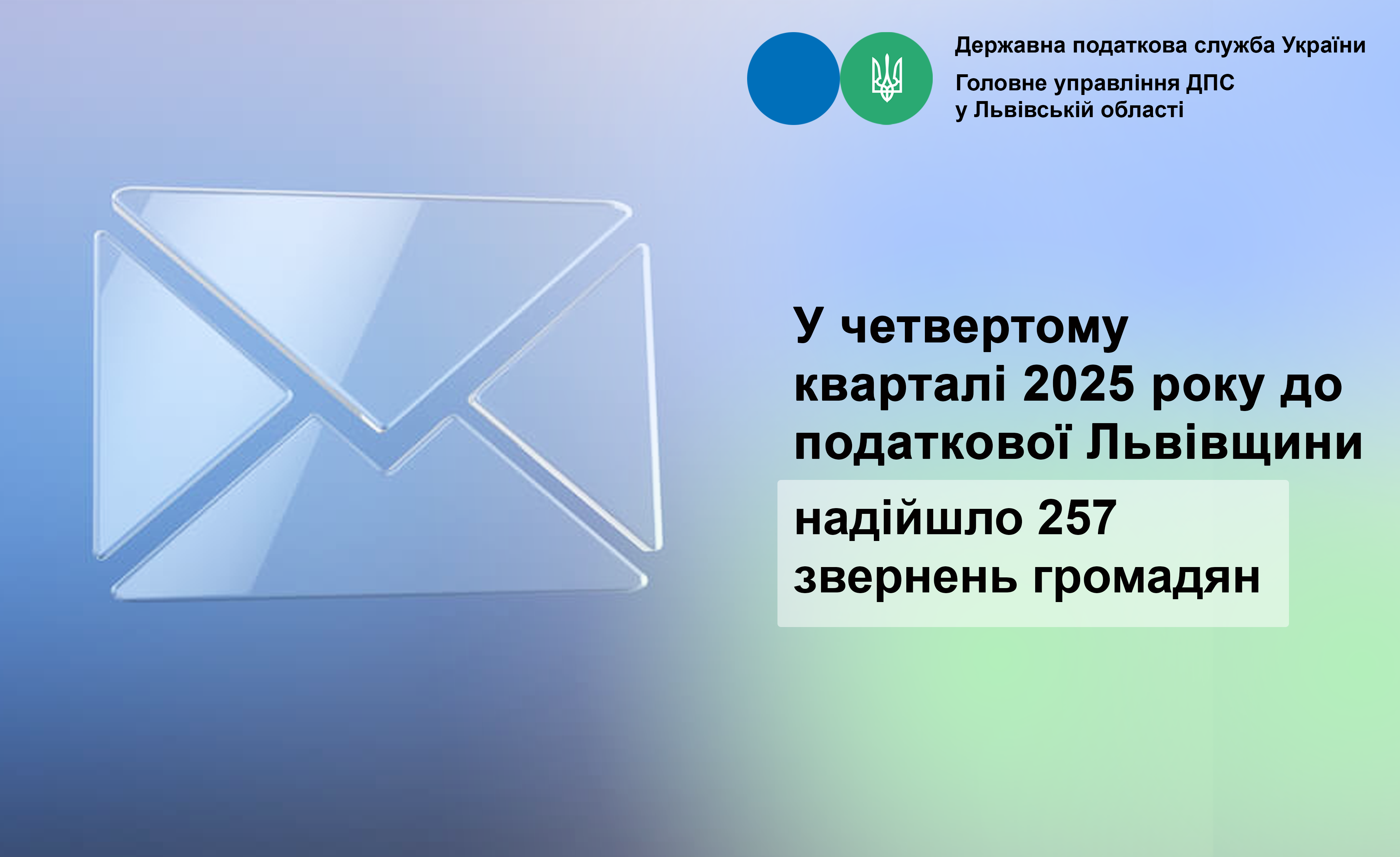 Упродовж жовтня – грудня 2025 року до Головного управління ДПС у Львівській області надійшло 257 звернень громадян, зокрема: 95 – поштою, 89 звернень засобами електронного зв’язку безпосередньо від громадян, та 73 - через міністерства та інші органи влади.