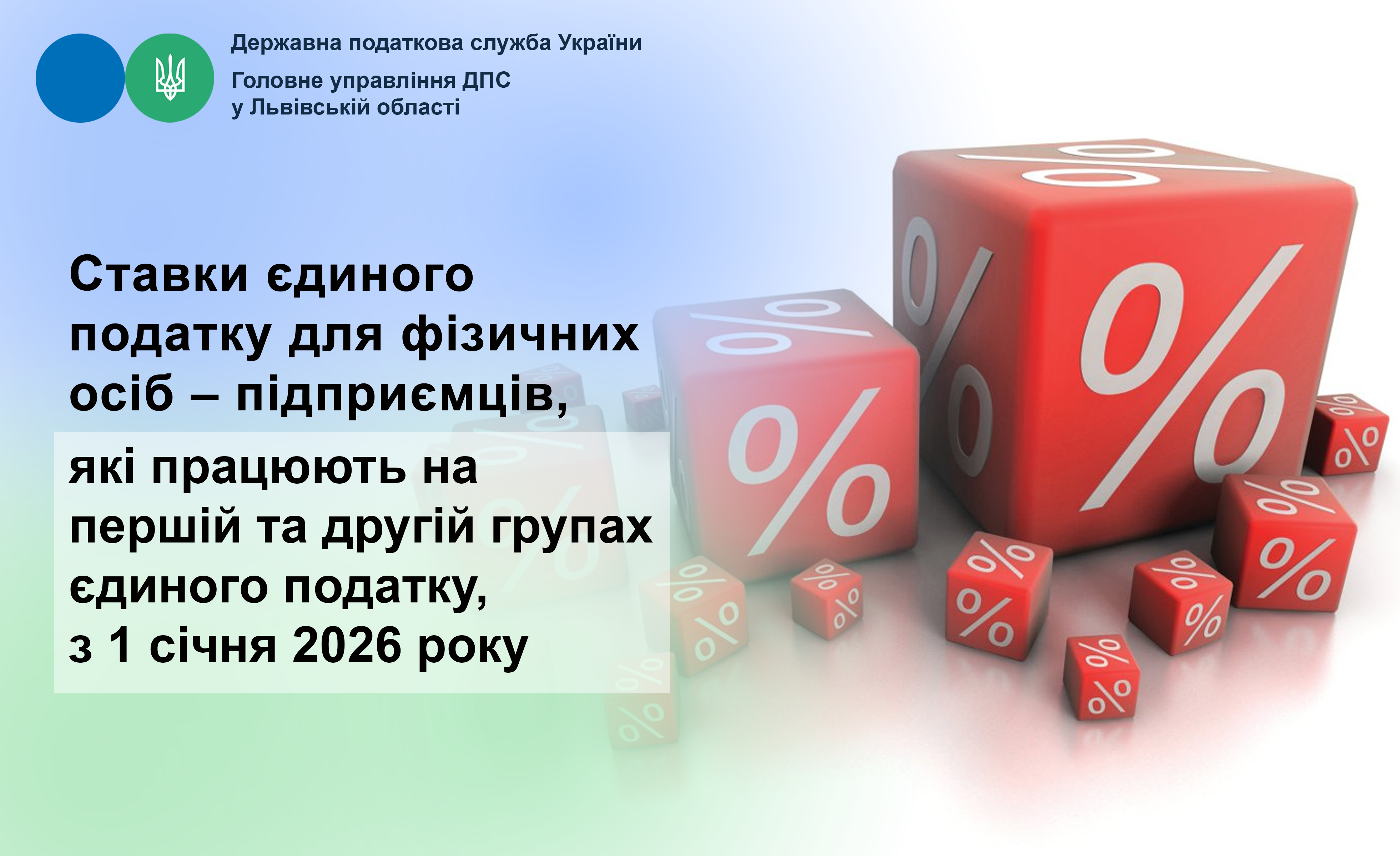 З 1 січня 2026 року для фізичних осіб – підприємців, які працюють на першій та другій групах єдиного податку, діятимуть нові розміри ставок єдиного податку.