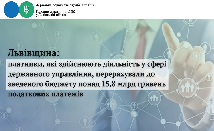 Львівщина: платники, які здійснюють діяльність у сфері державного управління, перерахували до зведеного бюджету понад 15,8 млрд гривень податкових платежів