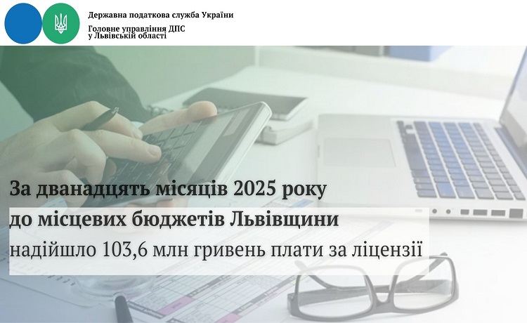 Упродовжсічня-грудня 2025 року надходження до місцевих бюджетів плати за ліцензії, що контролюють податкові органи, становлять 103,6 млн гривень, або 121,9 відс. доведеного завдання (додатково надійшло 18,6 млн гривень). Це на 14,9 млн грн або на 16,8 відс. більше порівняно з минулим роком.