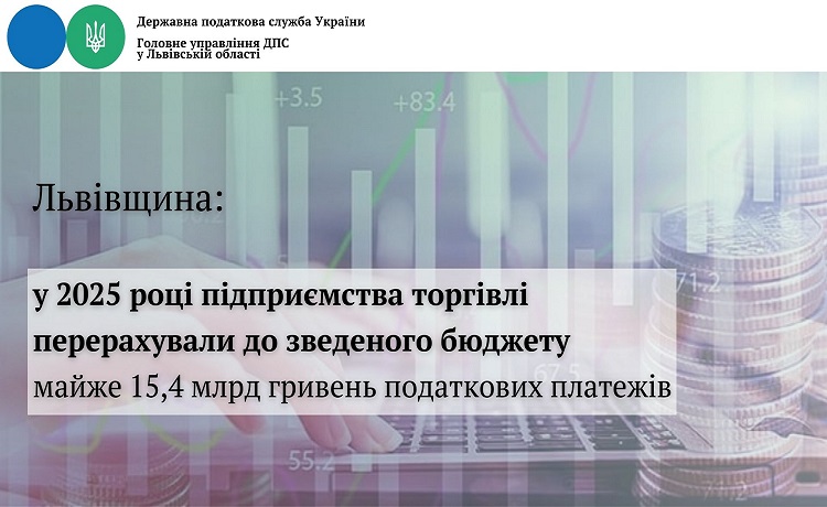 Львівщина: у 2025 році підприємства торгівлі перерахували до зведеного бюджету майже 15,4 млрд гривень податкових платежів