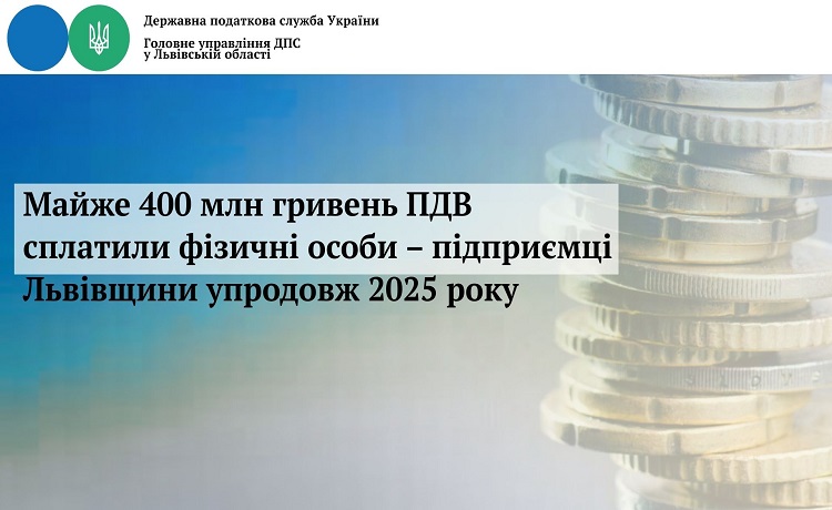 Майже 400 млн гривень ПДВ сплатили фізичні особи – підприємці Львівщини упродовж 2025 року