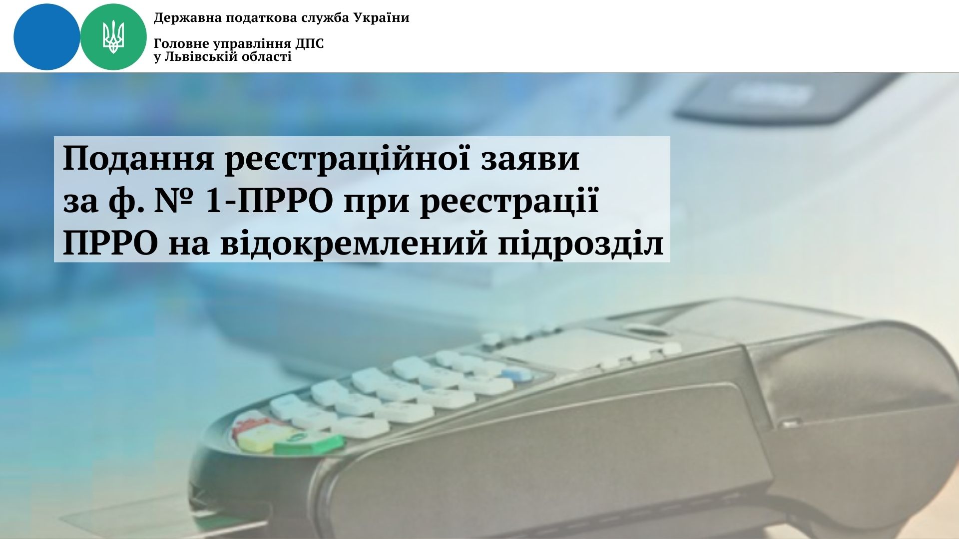 Подання реєстраційної заяви за ф. № 1-ПРРО при реєстрації ПРРО на відокремлений підрозділ
