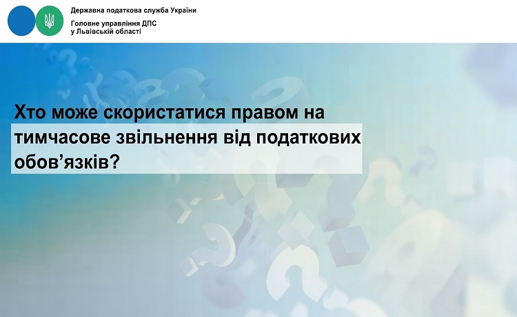 Головне управління ДПС у Львівській області нагадує, що платники податків із прифронтових територій, які постраждали внаслідок бойових дій, можуть отримати тимчасове звільнення від виконання податкових обов’язків.