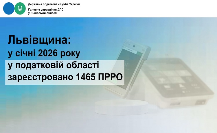 Протягом періоду з 01.01.2026 року по 31.01.2026 року в ГУ ДПС у Львівській області зареєстровано 1465 ПРРО.